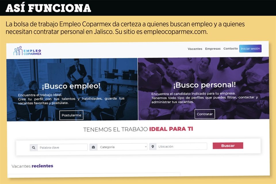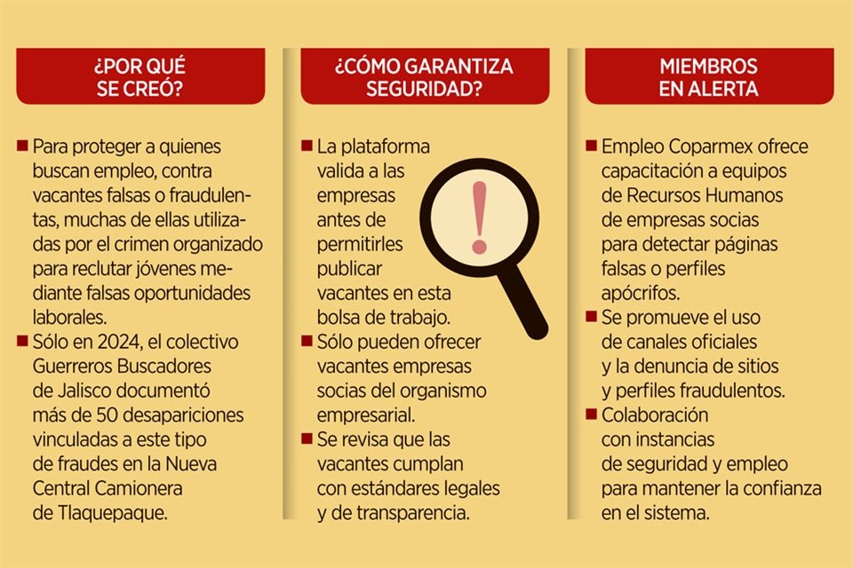 Para dar certeza a quienes buscan un empleo de que la vacante a la que van a aplicar es real y que no es una de las publicaciones que utiliza el crimen organizado para reclutar a jóvenes a través de falsas oportunidades laborales, o simplemente un fraude, Coparmex Jalisco lanzó su propia bolsa de trabajo en línea llamada Empleo Coparmex.