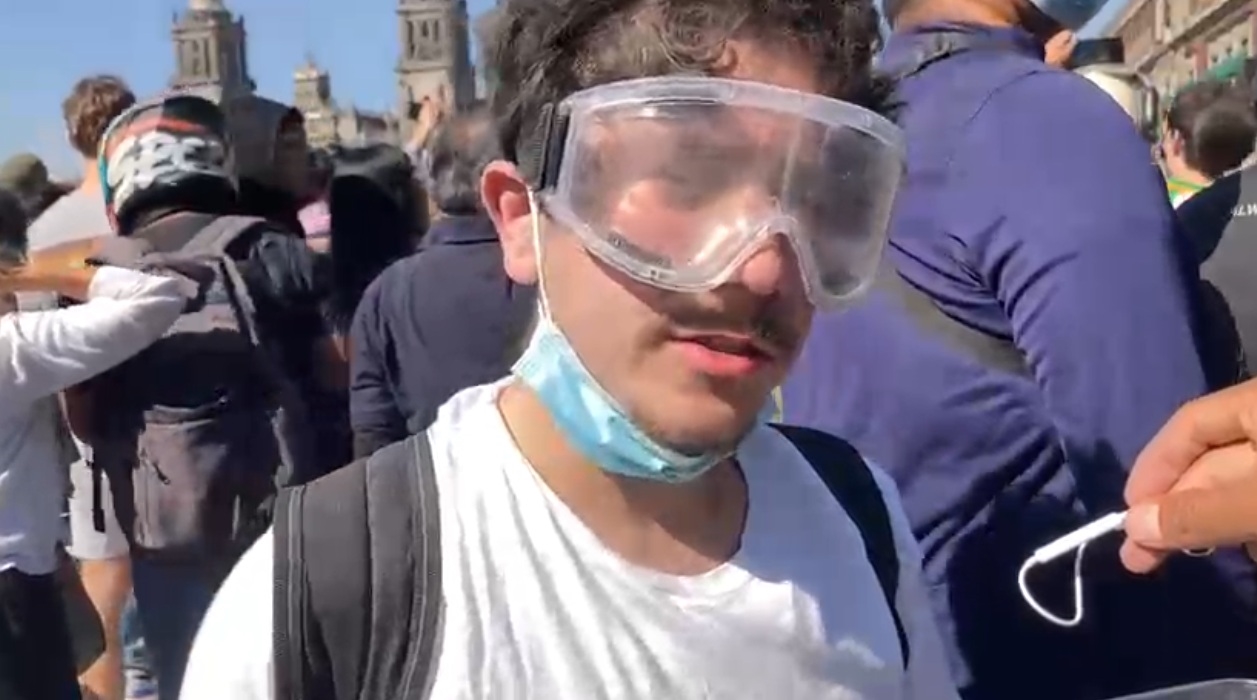 "Hasta ahorita hemos llegando dialogando, hemos sido más activistas que agresivos. Eso es lo que buscábamos en realidad. (Espero) que el Gobierno cambie, que sí se extripe la corrupción de nuestro Gobierno", dijo mientras sostenía un escudo que le fue arrebatado a un policía.