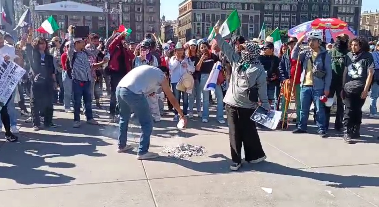 Al grito de "PRI, PAN, Morena, la misma chingadera!", manifestantes también quemaron imágenes de la Presidenta Claudia Sheinbaum y el Secretario de Seguridad, Omar García Harfuch.