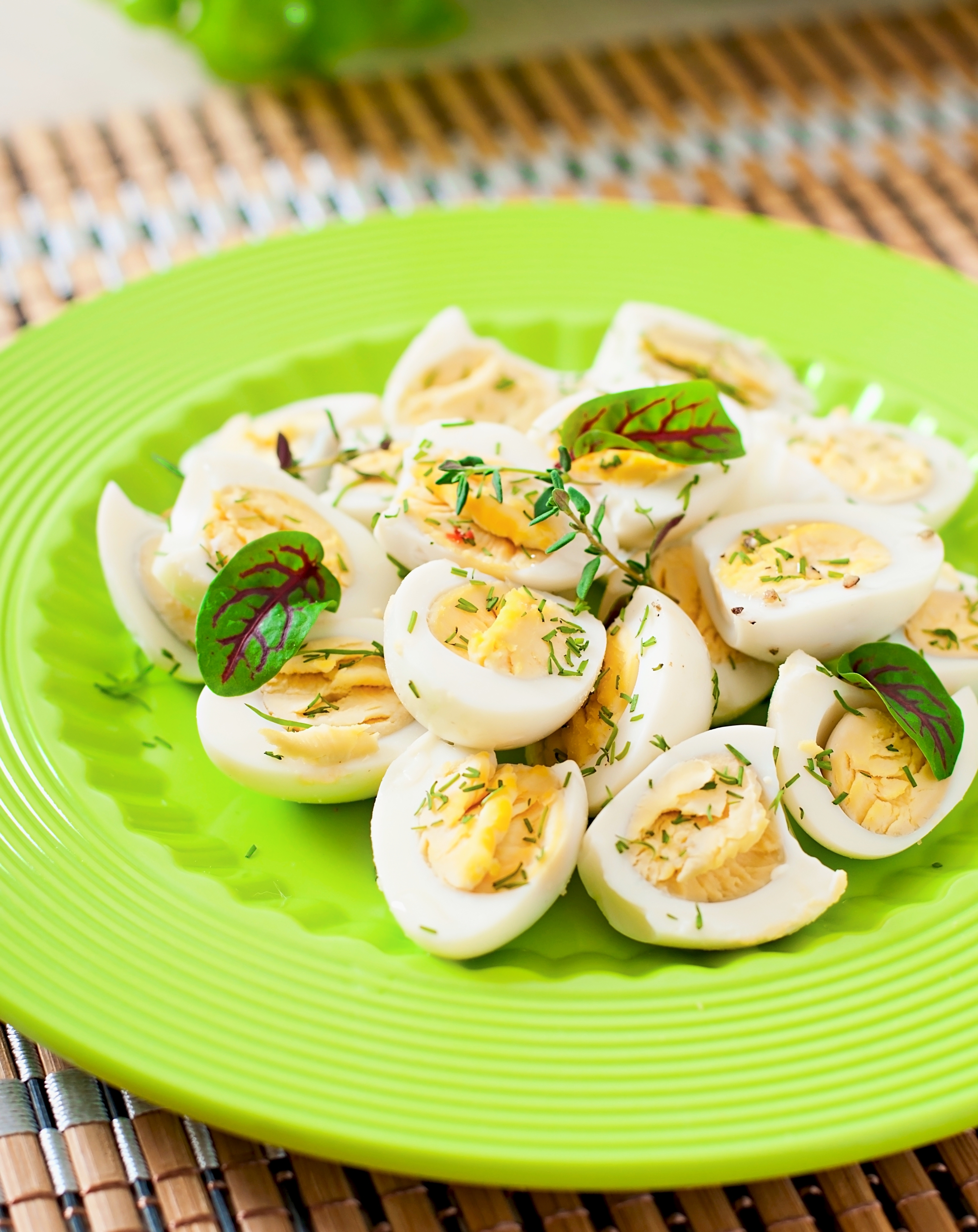 Cocer los huevos en agua por 5 minutos, retirar, refrescar y retirar la cáscara con cuidado.