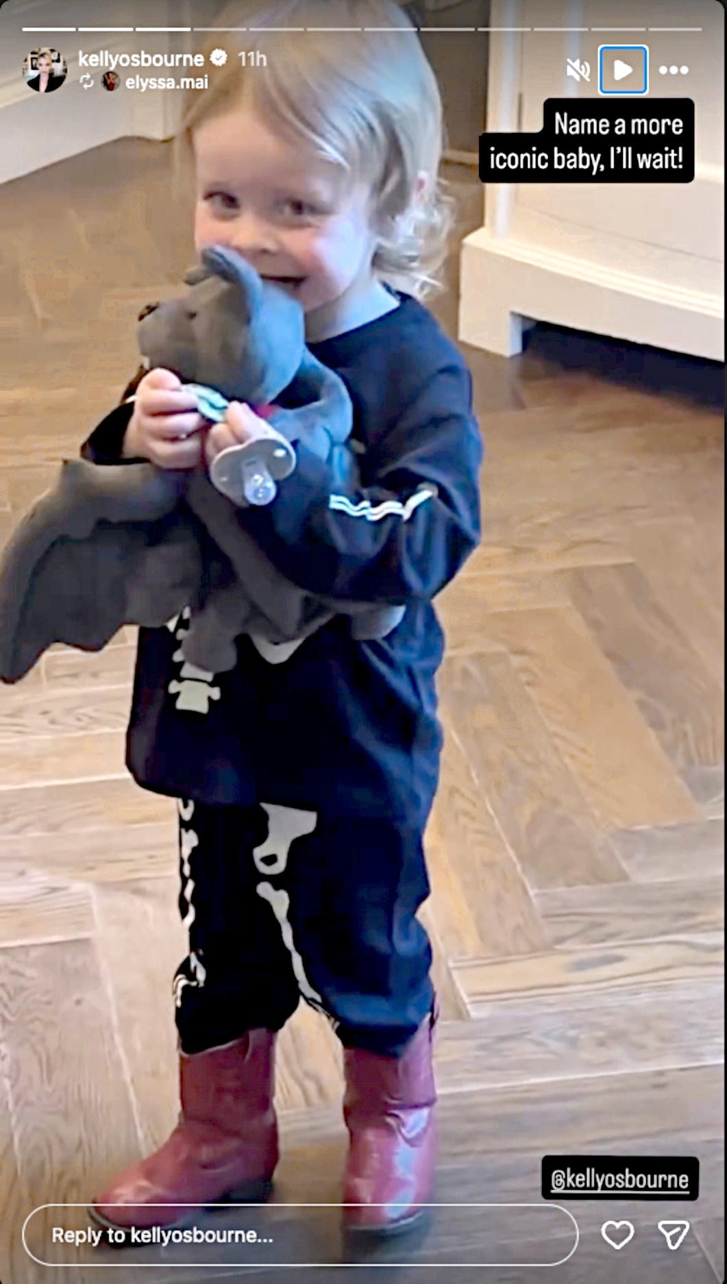 Kelly Osbourne rindió homenaje a su difunto padre, Ozzy, al subir un clip de su pequeño, Sidney, de 3 años, mordiendo un murciélago de peluche.