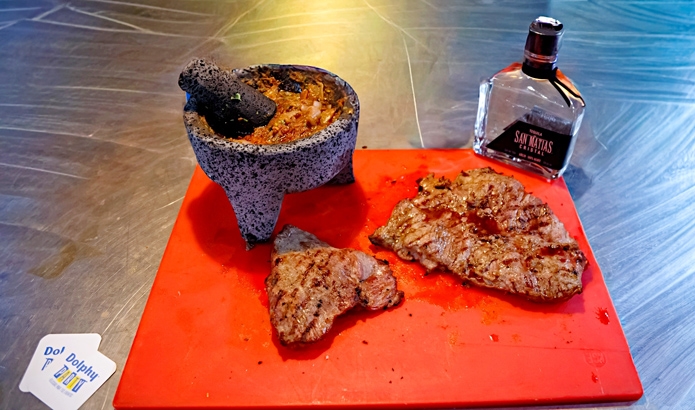 Los comensales prepararon tacos al pastor de pork belly, arrachera marinada y brownie con nieve Dolphy.