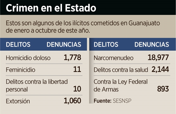 De acuerdo con el Secretariado Ejecutivo del Sistema Nacional de Seguridad Pública, en el 2020 hubo 53.61 homicidios dolosos por cada 100 mil habitantes en Guanajuato. Al año siguiente fueron 44.75; en 2022 hubo 41.41; para el 2023 se registraron 40.19; en el 2024 hubo 39.39; y este año, hasta octubre, van 27.20.