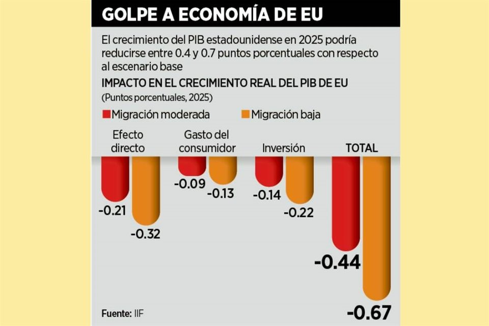 La economía de EU ya siente el impacto de las políticas migratorias de la Administración Trump y con la limitación de los trabajadores nacidos en el extranjero, la creación de empleo en ese país se está desacelerando bruscamente, señaló el Instituto Internacional de Finanzas (IIF, por sus siglas en inglés).