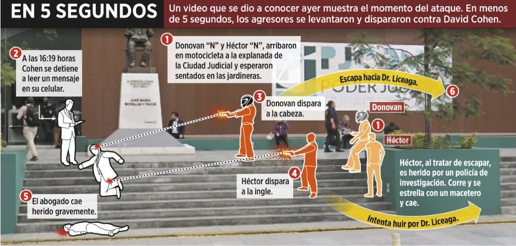 Ayer, fue difundido un video que muestra el momento exacto en el que Donovan y Héctor "N", también detenido por el crimen, disparan contra Cohen.