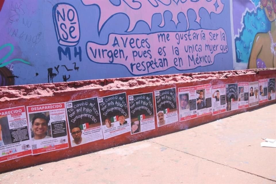 Miembros del Colectivo de Búsqueda de Personas Desaparecidas, Luz de Esperanza, pegaron fichas de búsqueda en el Parque Revolución. Crédito: Enrique Aguirre