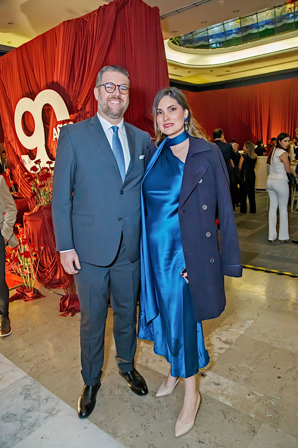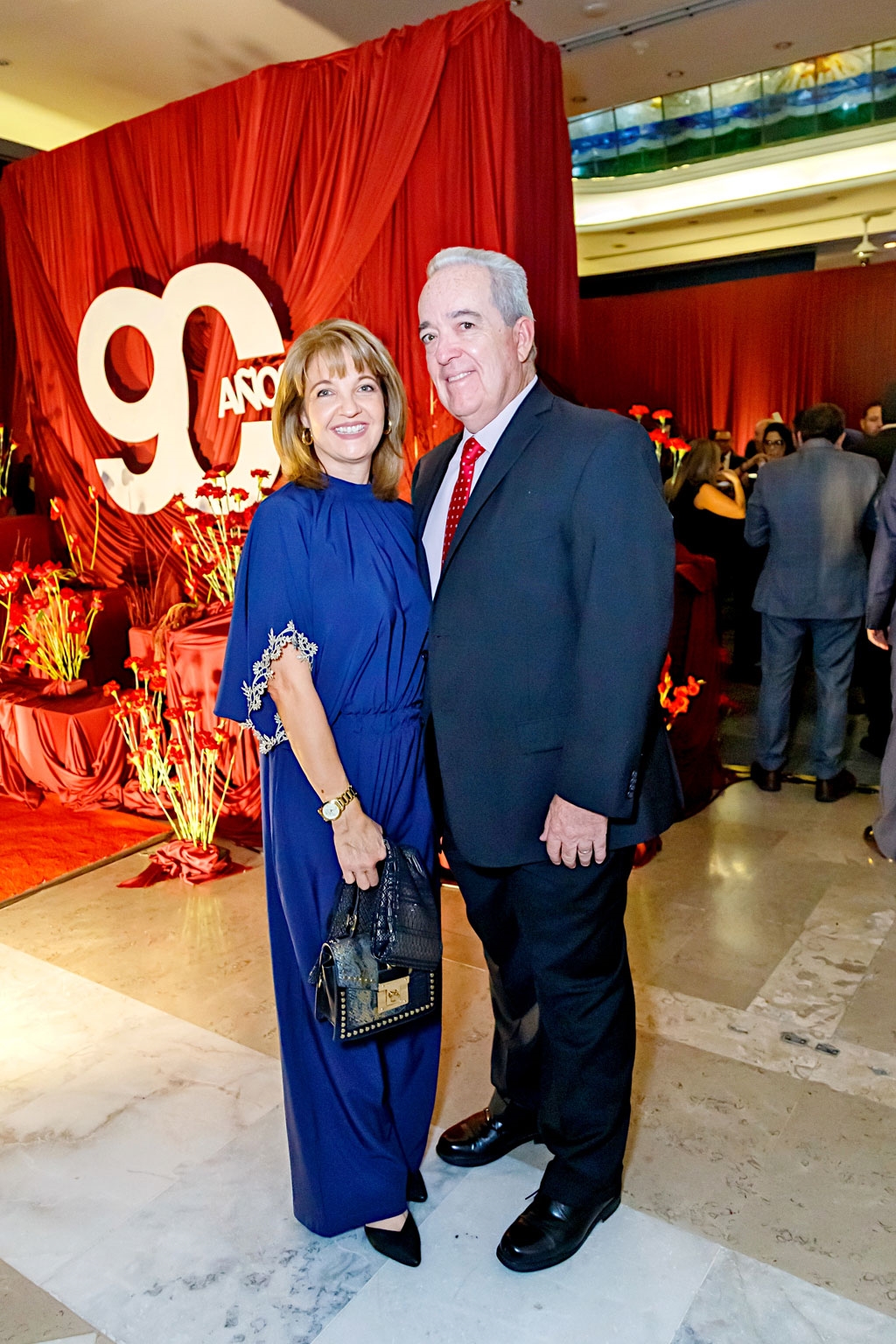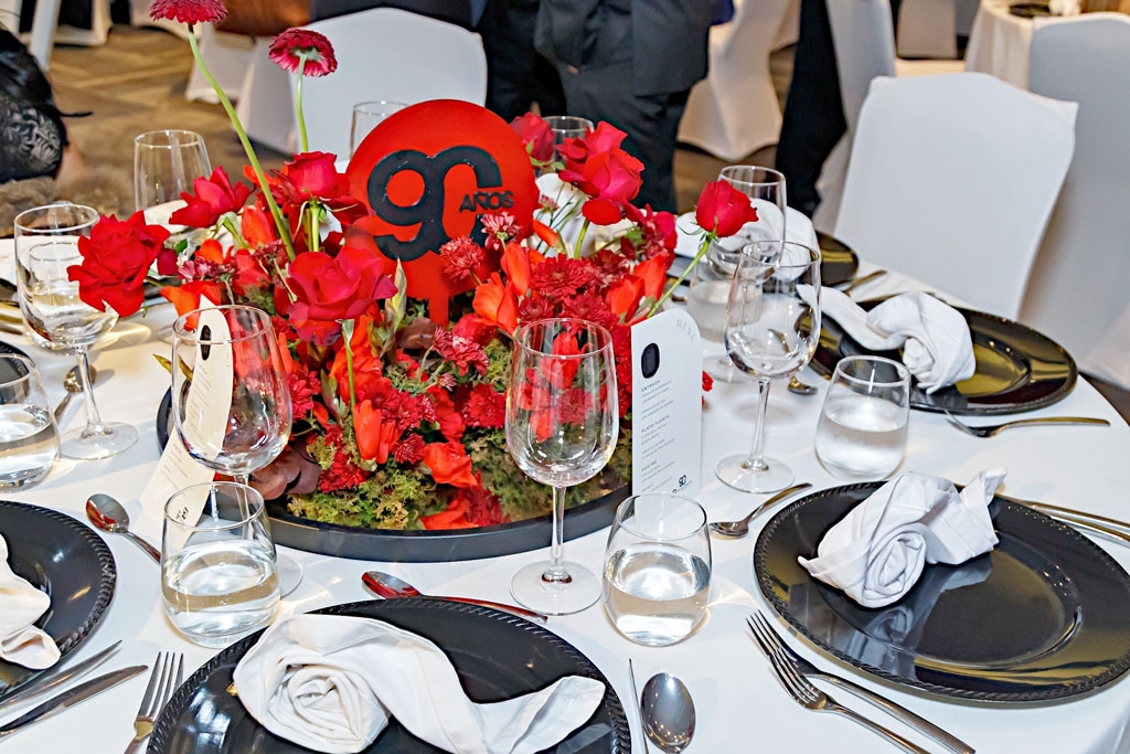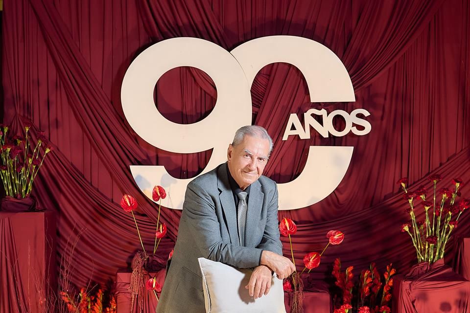 Como parte de los festejos, la empresa familiar organizó un magno evento que desde las 8:00 de la noche reunió a cientos de personas, las cuales, conforme iban llegando, se dirigían a tomarse la foto del recuerdo en un set decorado con telas, flores de color tinto y un letrero que destacaba su nonagésimo aniversario.
