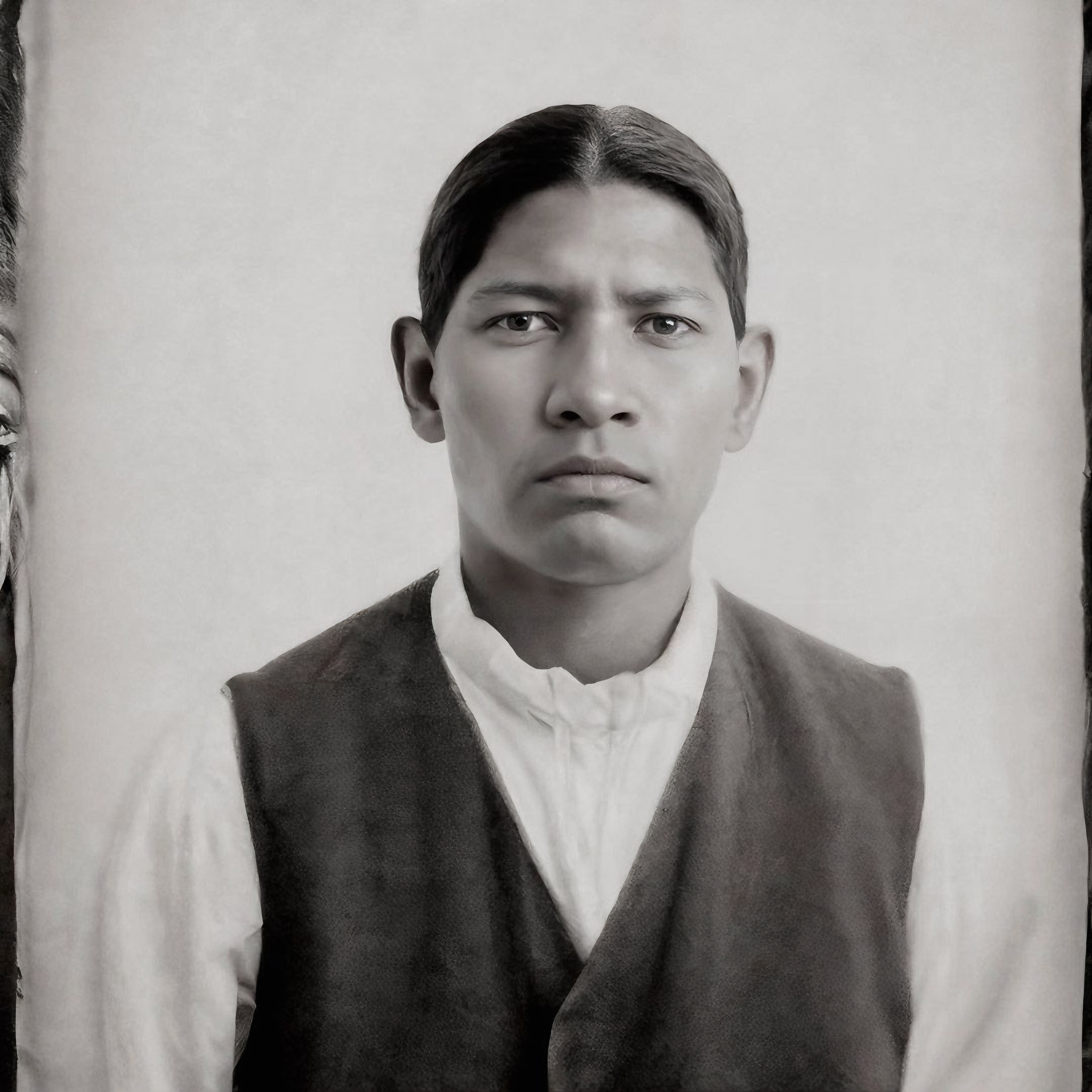 En sus mesas de trueque, los isleños le compartieron sus álbumes familiares y, sobre todo, los recuerdos orales de sus antepasados perdidos. A cambio, Séptimo tradujo estas historias y rasgos físicos en prompts para la IA, asumiendo el rol del fotógrafo que hubiera existido en esa época.