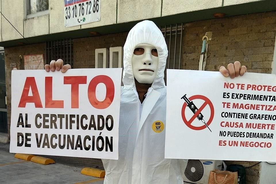 Un grupo de ciudadanos se manifestó la mañana de este lunes a las afueras de Casa Jalisco inconformes ante la posibilidad de que las autoridades locales obliguen a presentar certificado de vacunación o prueba negativa de Covid-19 para asistir a eventos masivos de ocio.
