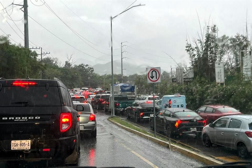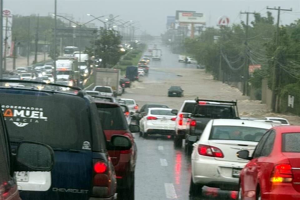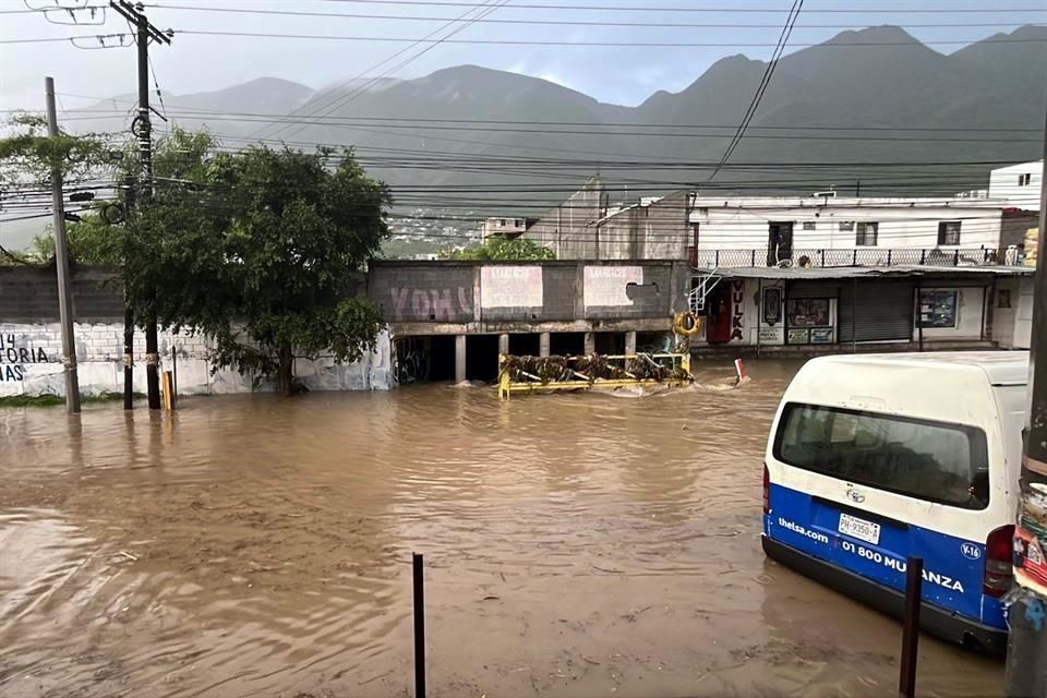 Las lluvias inundaron la calle Antiguo Camino a Villa de Santiago, entre Paseo la Hacienda y Cañón del Huajuco, justo donde una mujer y un hombre fueron arrastrados por la corriente y murieron, el 10 de septiembre.