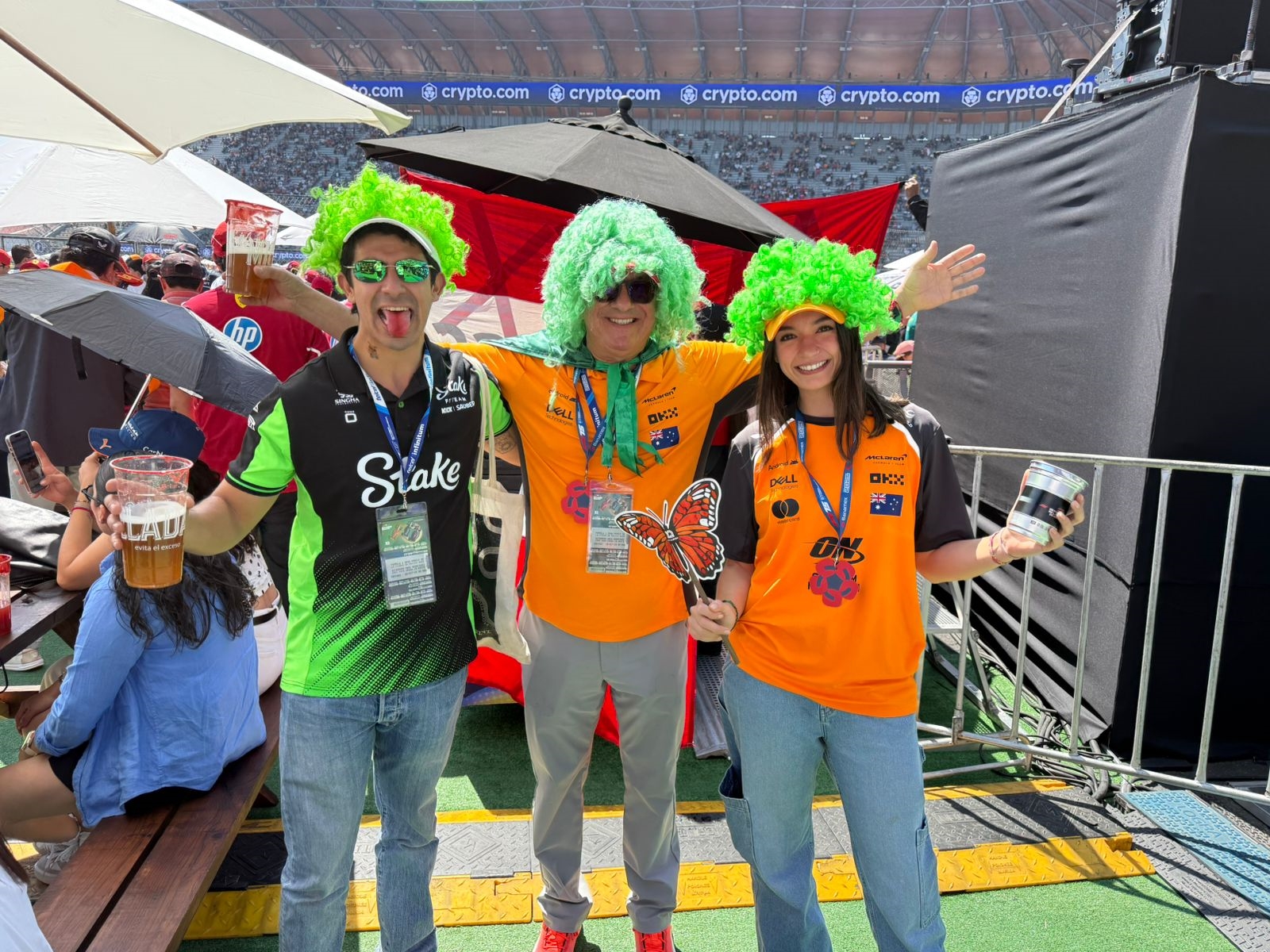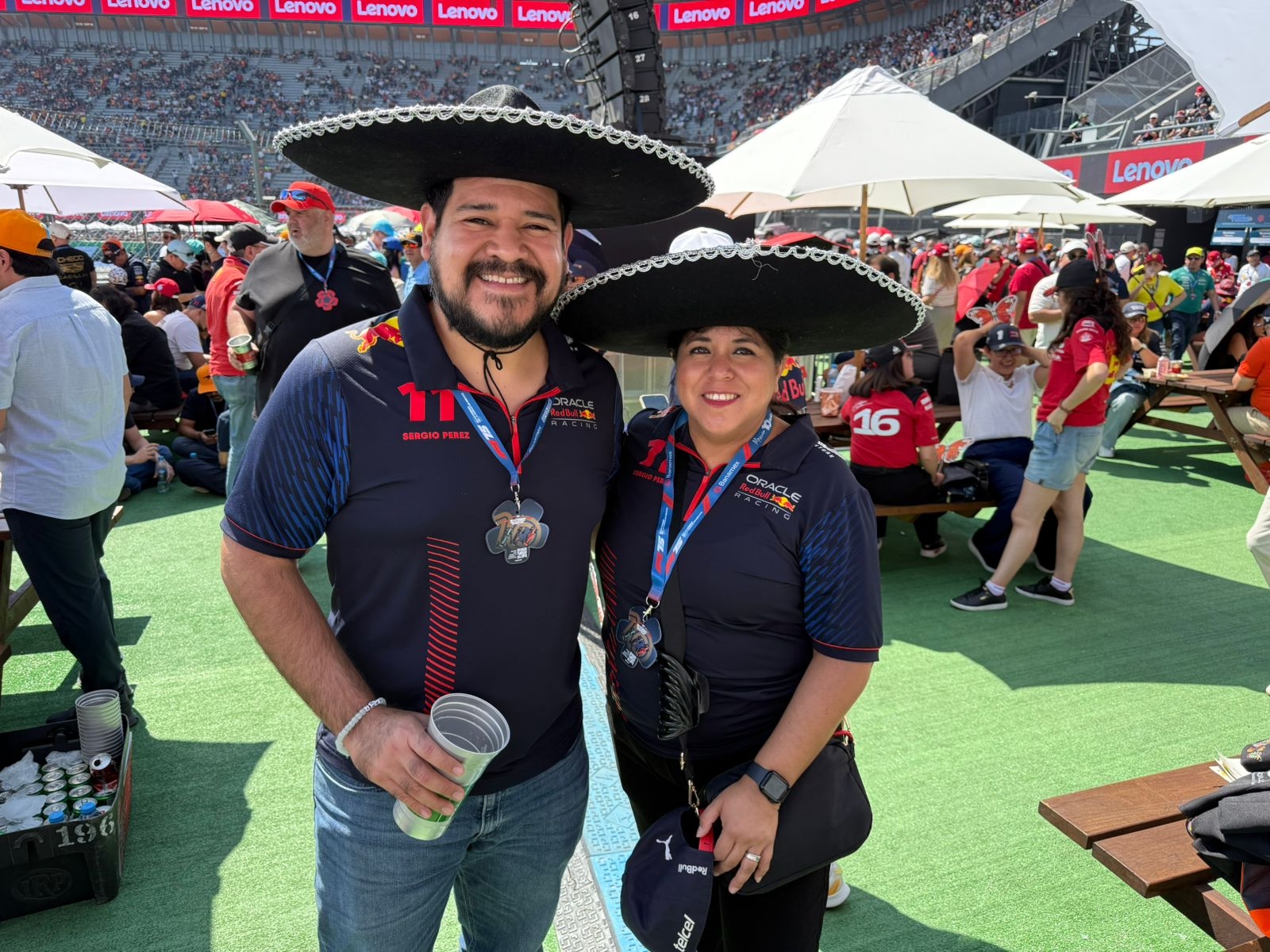 La gente se vuelve loca cuando Checo aparece en las pantallas para darles y mensaje. Les recuerda que los ve el próximo año.