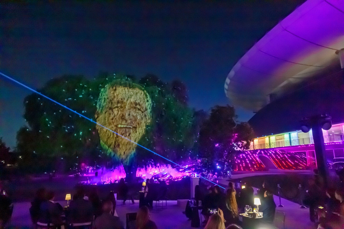 En ese momento, un sistema de iluminación se encendió para trazar líneas de colores sobre las paredes del museo, como si se tratasen de pinceladas de luz viva, y un enjambre de drones se elevó para formar figuras. La pirotecnia complementó el efecto.