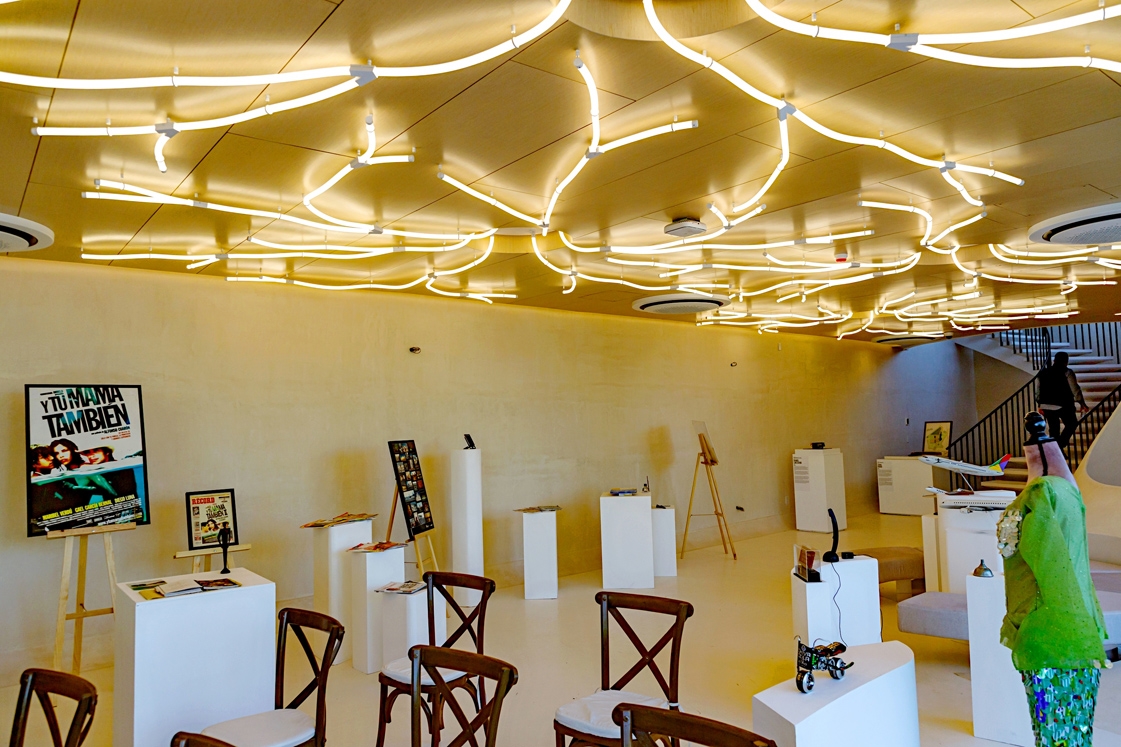 - Sala inmersiva para 60 personas, ideal para charlas, proyecciones de cine y hasta clases de yoga.