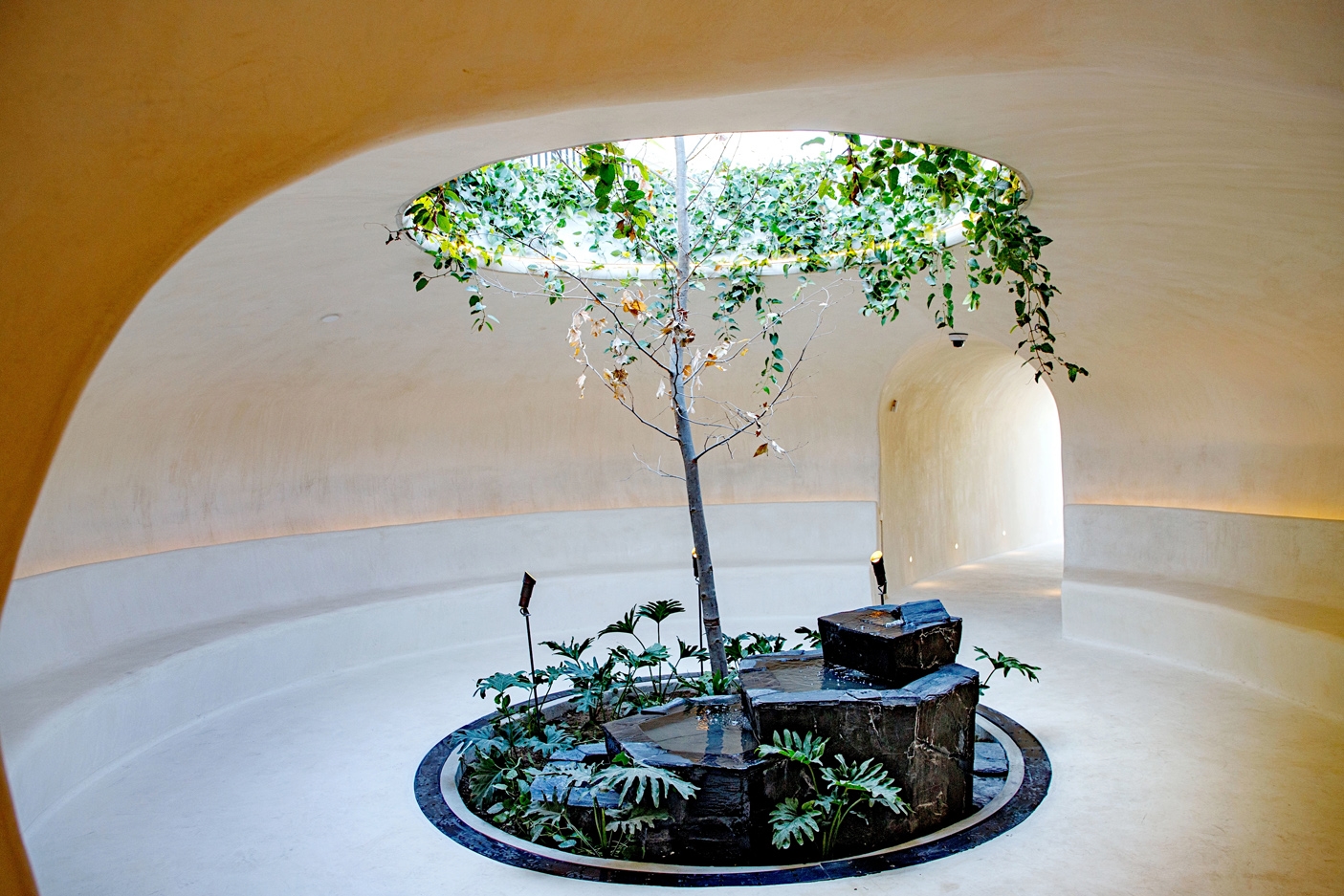 Su diseño se inspira en el concepto grotto, pues emula una cueva, y cuenta con los siguientes elementos: