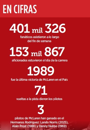Con un Top 3 encabezado con autoridad por Lando Norris, seguido por Leclerc y Verstappen, la Fórmula 1 ofreció un gran episodio en la recta final de la temporada, el cual quedará en la memoria de quienes asistieron a disfrutar de este deporte lleno de velocidad.